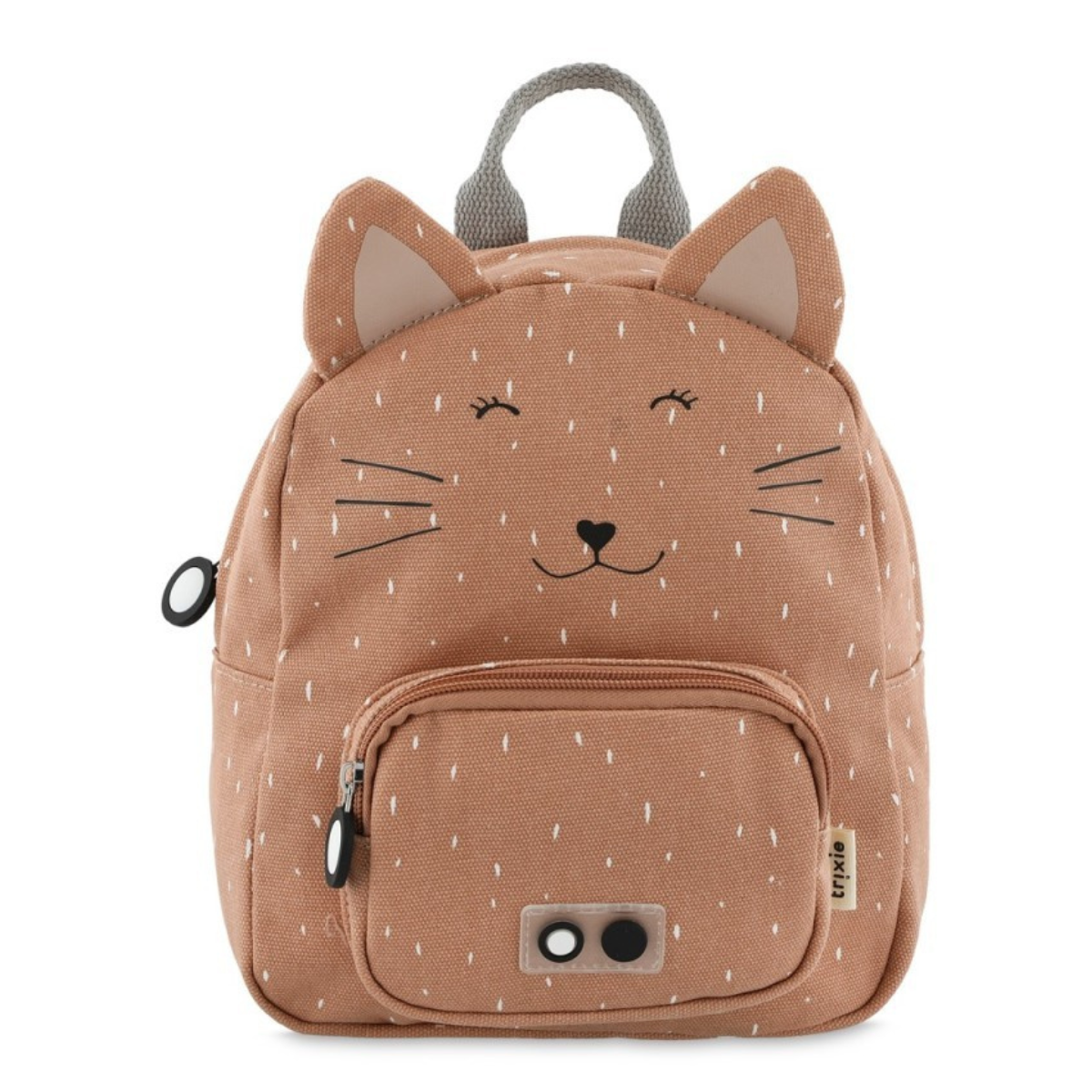 En söt och praktisk brun ryggsäck med katt motiv, för alla små äventyrare som älskar katter!