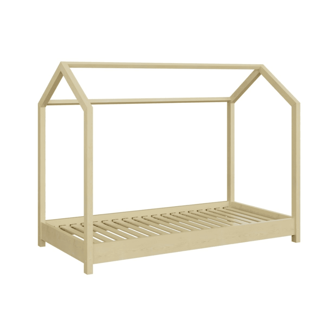 Den låga designen gör det enkelt för barnet att kliva i och ur sängen själv, något som uppmuntrar självständighet i sann Montessori-anda. Ramen i husform väcker fantasin och bjuder in till lek: häng en filt eller lakan över taket och förvandla sängen till en mysig koja! Perfekt för sagostunder, vilopauser eller hemliga lekar. Kojor skapar en trygg liten vrå där barnet kan få lugn och ro eller låta fantasin flöda fritt – ett viktigt inslag i barnets känslomässiga utveckling.